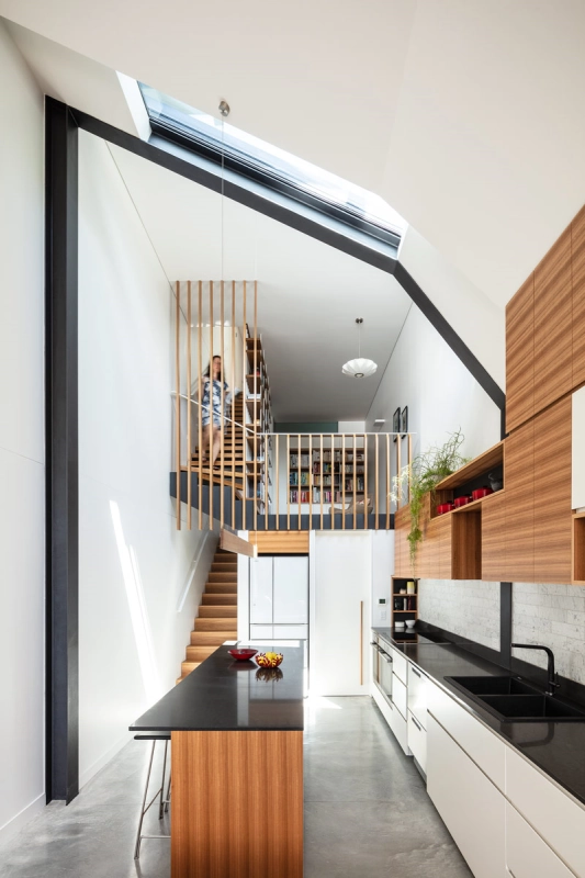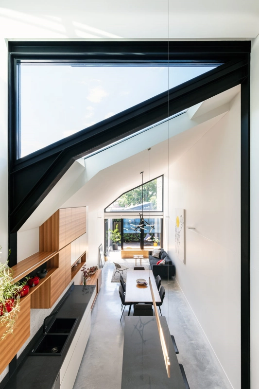 Born of a steep and narrow site, a yearning for lightness and space and a core design philosophy grounded in passive solar design and sustainability, the Ferry Road House is representative of how infill development within a heritage conservation area can be comfortable, practical and environmentally sensitive without compromise.