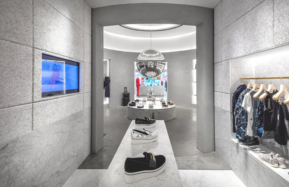Back in January 2013, when BAUX has just launched their first collection of BAUX acoustic tiles, Managing Director, Fredrik Franzon, received an email from luxury fashion brand Stella McCartney. Stella was in the process of renovating her flagship store in Milan and was looking for innovative sustainable materials to finish the display walls and staircase. BAUX wood wool tiles became an integral part of the Milan store design and today, BAUX and Stella McCartney are global partners, with BAUX acoustic tiles adorning the walls of Stella McCartney stores in Japan, Italy, Netherlands, France, Greece, Spain, Azerbaijan, US, UK and Australia.