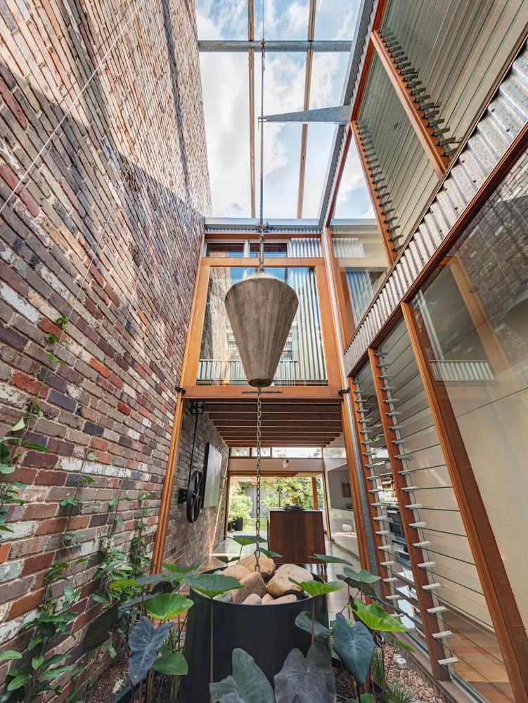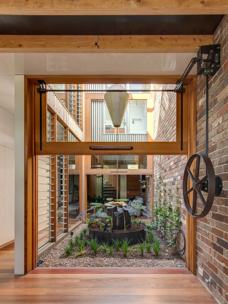 A primary objective of the design process was to find a way to ensure the design would contribute to the longevity of the building. To this end, a central courtyard provides all internal spaces with superior natural light and access to green spaces despite site restrictions, while planting beds are integrated into the home to improve internal air quality.