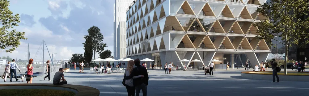 The wooden hybrid building The Cradle designed by HPP Architects demonstrates how architecture can make cities fit for the future. Project developer Interboden GmbH & Co. KG has set itself the goal of integrating as many Cradle to Cradle aspects as possible. This also means the building is designed as a material bank. In 50 years, The Cradle will not simply be torn down. It will be dismantled according to the principles of the circular economy and most of the material will be reused or high-quality recycled.