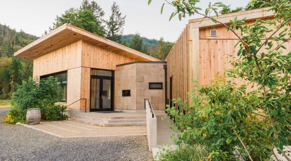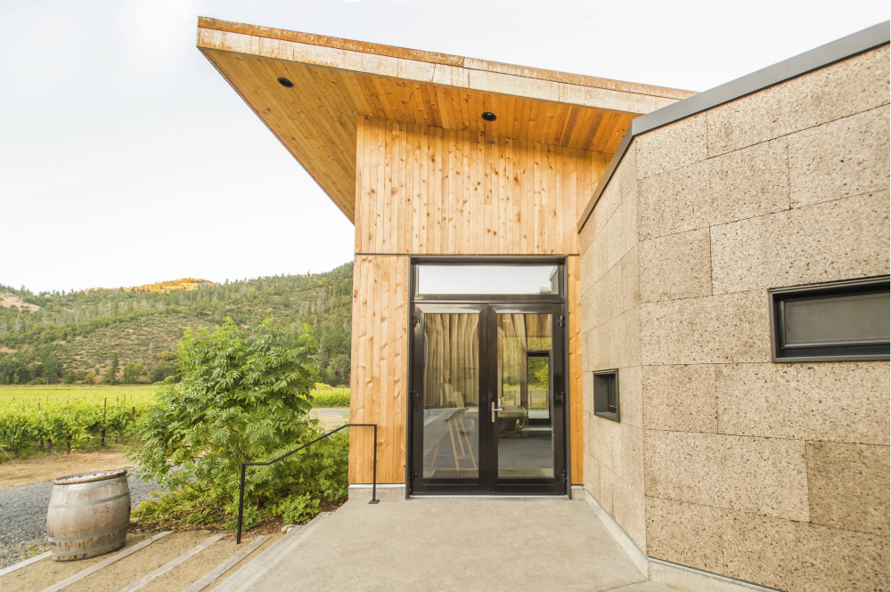 - The building incorporates a super-insulated, airtight building envelope, high-performance HVAC systems (including advanced heat recovery ventilation), and 100% LED lighting — all of which help the tasting room and adjacent case storage building minimize their energy loads.