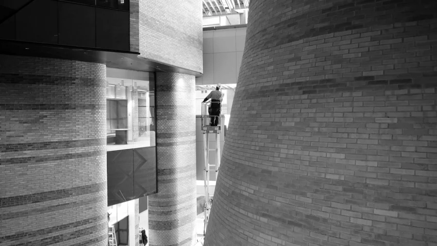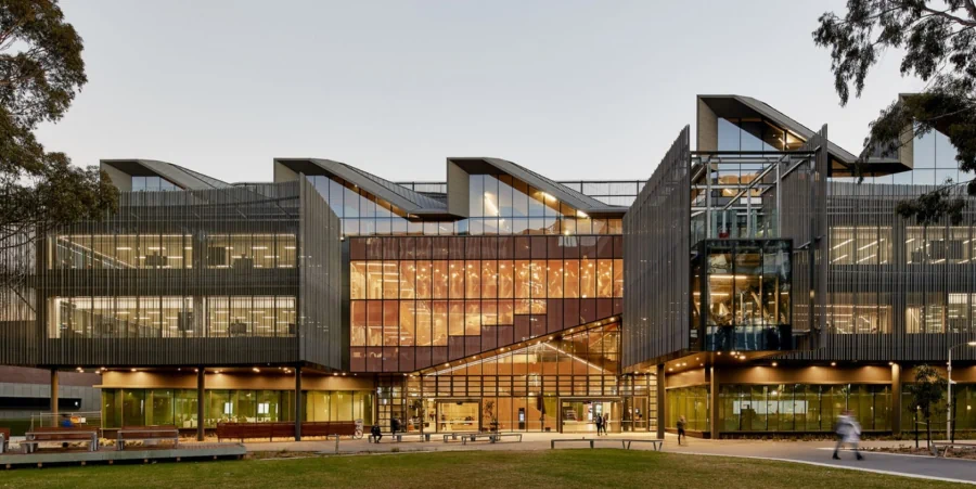 Landscape, and its change over time, has been a strong theme for the site of the Clayton campus - starting with indigenous bushland, then colonial farmland, suburban subdivision and finally a university campus.Streets, courtyards, bridges, balconies and stairs are transformed into ravines, clearings, strands, perches, escarpments and amphitheatres that are choreographed to invent a new landscape of the interior.