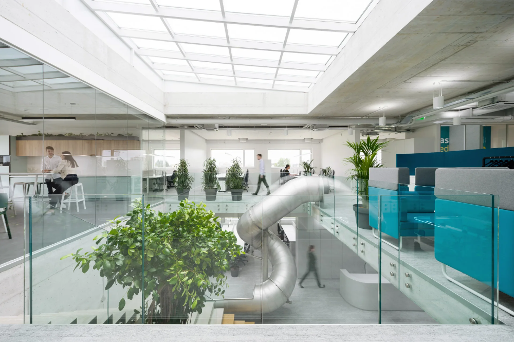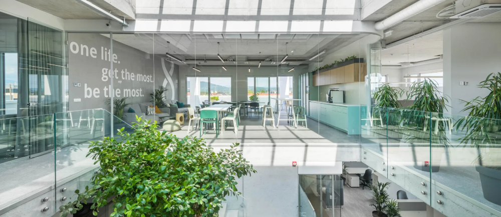 - Isn’t it awesome to work in a space that’s filled with life? Green plants all around. And look at the giant tree in the central atrium. Yes, it’s a real tree!