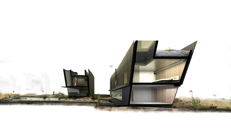 The new residential units should sit in the landscape as a bird’s nest would. Using ideas of how birds use local materials, respond to climate, respond to predators (crime) and camouflage into their surroundings. The natural landscape & its ecology must be a restored and become the starting point and restraining device for the design to “reverse local extinction through sustainable architecture”.