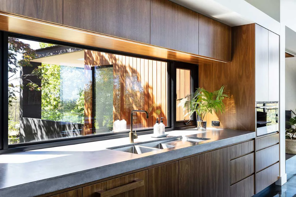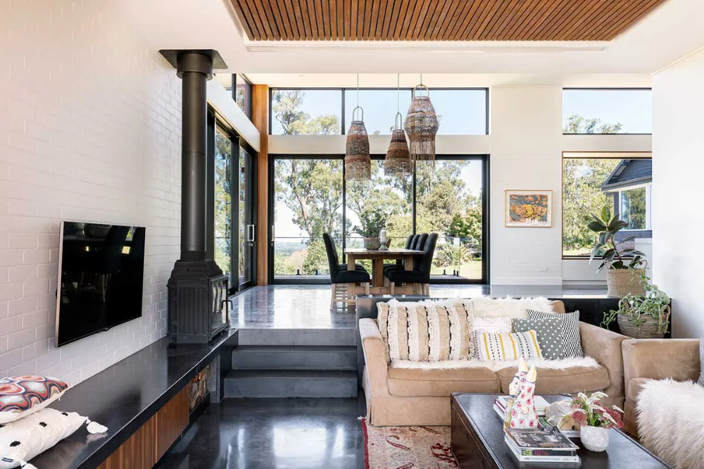 A contemporary, sustainable addition to an existing 1930’s dwelling. With the house already commanding a spectacular view over the Bowral town, the new addition was to broaden this view to the south-east and connect the house with the landscape and existing tennis court. Soaring ceilings and a large expanse of thermally-broken glazing allow the occupants to watch the weather roll in from the south, and look down over the early morning blanket of fog which envelopes the town.