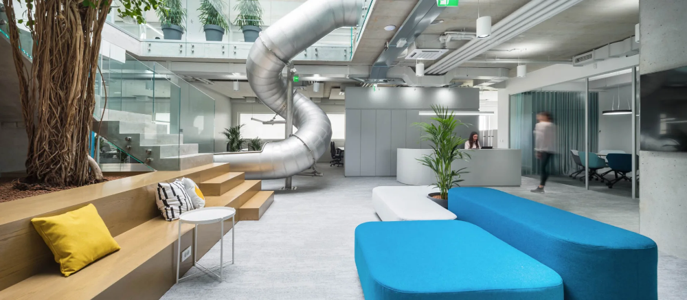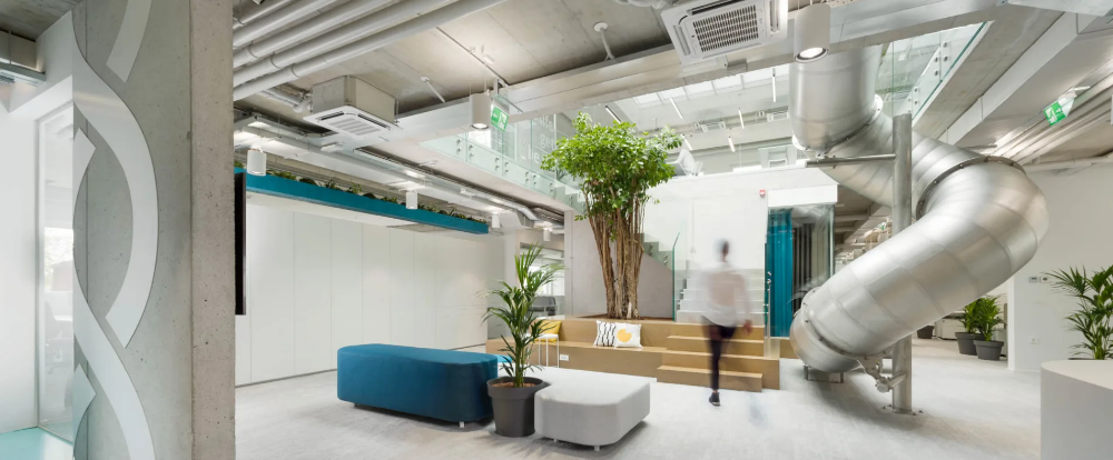 - Isn’t it awesome to work in a space that’s filled with life? Green plants all around. And look at the giant tree in the central atrium. Yes, it’s a real tree!