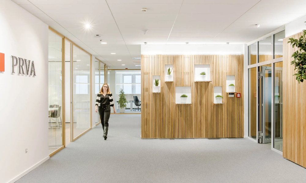 The new arrangement makes optimal use of the existing space and it allows for future growth and expansion of Prva. With proposed workplace design solutions it offers a wide variety of work settings for their people, ranging from activity-based rooms to enclosed meeting spaces for quiet, focused work. We placed departments around the floor space according to Prvas updated process map and the frequency of interactions between their business functions.